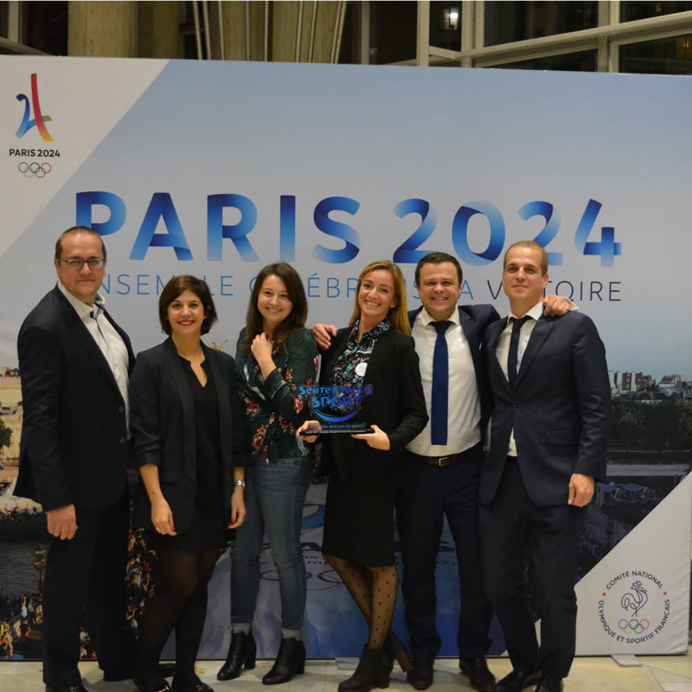 La remise des prix a eu lieu le 21 novembre dernier à la Maison du sport français. François Grand, associé et Sandrine Faucher, à l’origine du projet, se sont vus remettre le prix par Richard Dacoury et Nathalie Péchalat.
